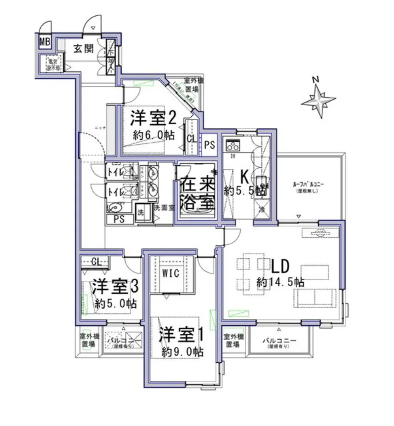 洋室1は約9.0帖の広さがあり主寝室に最適な広さです。ウォークインクローゼットを完備しているので、シーズンオフアイテムの収納にも便利。洋室2と3も窓付きで陽当たり通風良好。子供部屋や作業部屋としてもご活用できます。