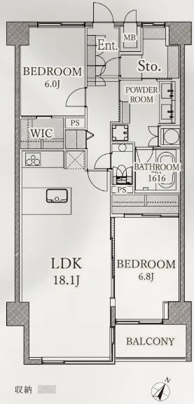 リビングに隣接する約6.8帖の洋室は、南東側のバルコニーに面しているので外から自然光が入り込み、部屋の隅々まで明るく照らしてくれます。引き戸を開ければより広いリビングとしてもご利用いただけます。玄関に近い洋室6帖はウォークインクローゼットを完備しているので、大きな荷物の収納にも最適です。