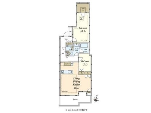 リビングから離れた洋室は約10.0帖の広さがあります。ウォークインクローゼットを完備しているので洋服の収納には困りません。約5.1帖の洋室はワークスペースや子ども部屋としてもご活用いただけます。