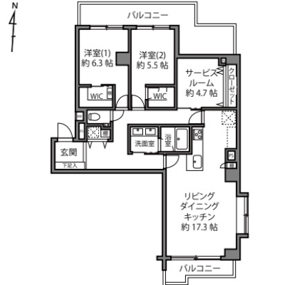 洋室はバルコニーに面し、自然光が心地よく差し込みます。さらにウォークインクローゼットを備え、キャリーケースなど大きな荷物の収納に便利。約4.7帖のサービスルームは、趣味部屋や収納スペースとしてもご活用いただけます。