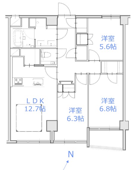 12.7帖のLDKは南東向きで、朝からたっぷりと光が差し込む明るい空間です。家族が自然と集まるリビングは、ゆとりある広さで開放感があり、食事やくつろぎの時間を心地よく過ごせます。